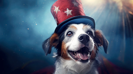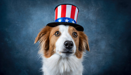 A cute dog wearing a patriotic American flag themed hat, perfect for celebrating Independence Day or any patriotic event.