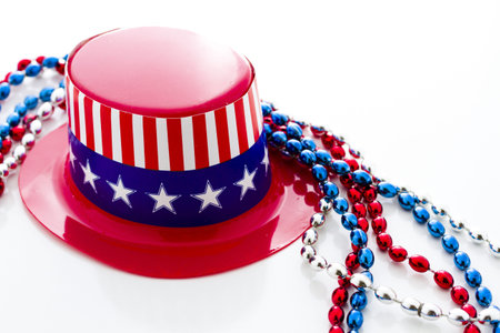 A closeup shot of a hat with stars on a white background USA Independence Day Carnival