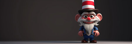 3d rendering of a dwarf with a top hat on a dark background