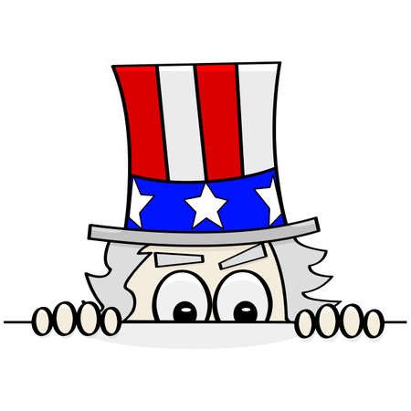 Concept cartoon illustration showing Uncle Sam sneakily looking over a wall to spy on someone else