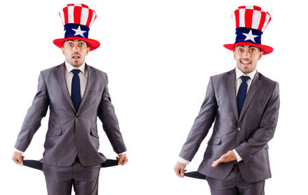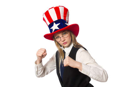 Man with american hat isolated on white