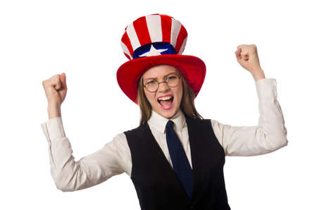 Woman wearing hat with american symbols