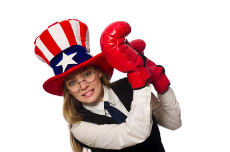Woman with boxing gloves isolated on white