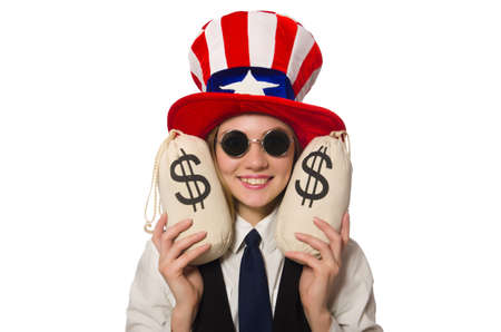 Man with american hat with moneybags