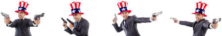 Man with american hat and handguns