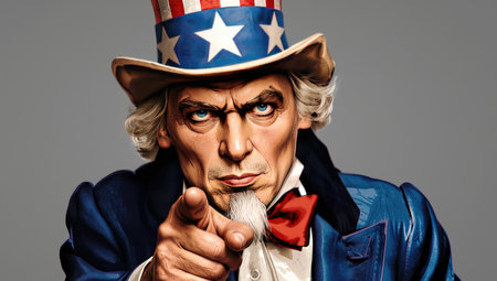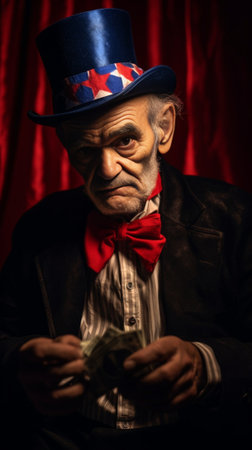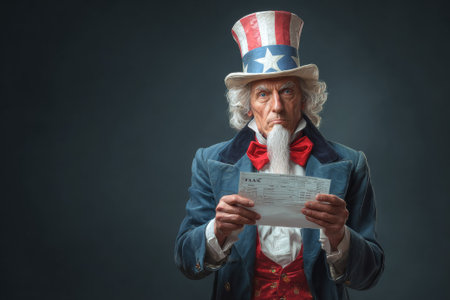 Uncle Sam, a personification of the us government, holds a tax form, symbolizing American government duties and financial responsibilities
