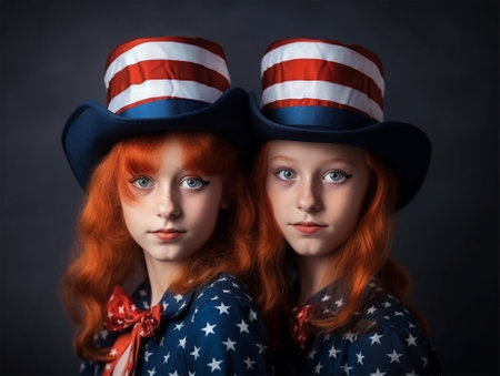portrait of pretty girls in hats in the colors of the american flag. american flag day .independence day.Generative AI