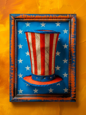 Patriotic Top Hat in Starry Frame Against Vibrant Yellow Background Independence Day Concept AI Generative