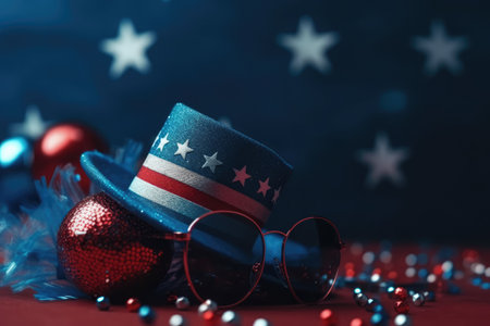 Festive patriotic accessories celebrating a national holiday with red, white, and blue star-spangled decorations.