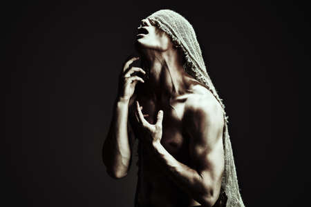 Seductive adult male. Flirty mood. Naked provocative man, model in studio, sexual concept