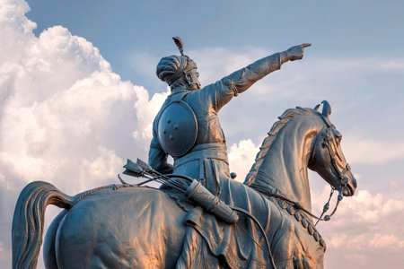 Mumbai, India - December 20, 2020 :Statue of King Shivaji Maharaj, an Indian warrior-king who formed the genesis of the Maratha