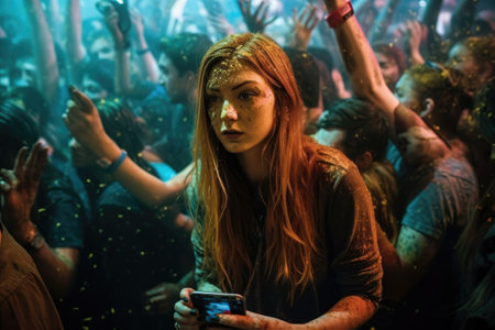 Young adults photographing a concert with their smart phones outdoors generated by artificial intelligence
