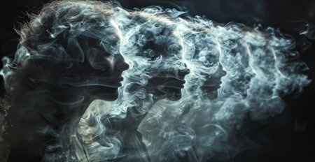 Surreal Multi-Exposure Image of Faces Merging with Smoke