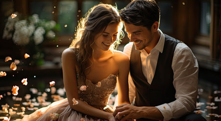 Couple of bride and groom at the altar, surrounded by nature and love., generative AI
