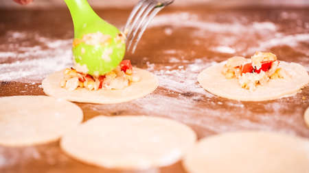Baking delicious Argentine empanadas with chicken and vegetables.