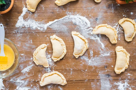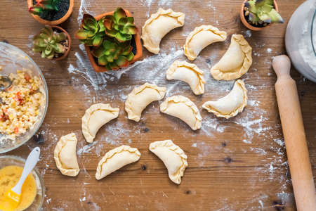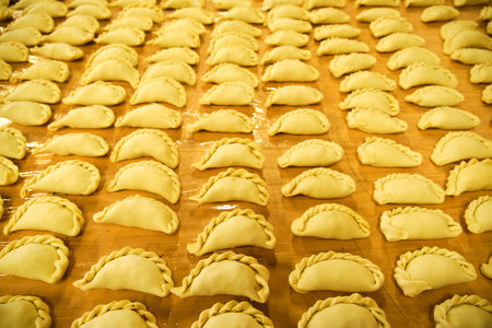 Argentinean Empanadas ready to bake in the oven, traditional food from Argentina.