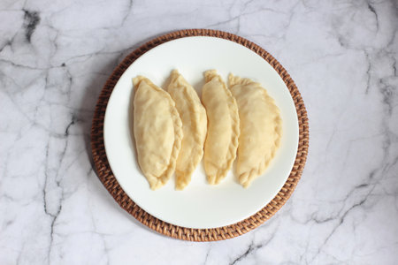 Pastel Goreng is a Popular Pastry in Indonesia. ready-to-cook raw pastel filled with vegetables and chicken meat