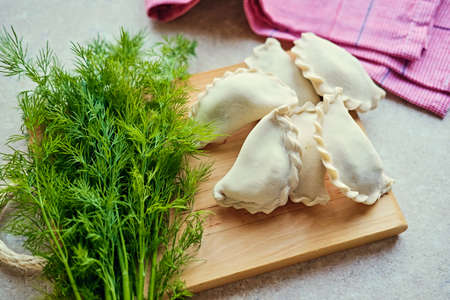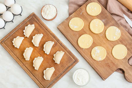 Homemade varenyky Dumpling, Traditional ukrainian Food Before Boiling.