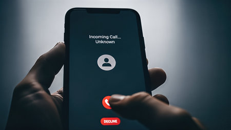 Smartphone in hand shows an incoming call from an unknown number, highlighting the risks of telephone scams and cybercrime in today's digital landscape