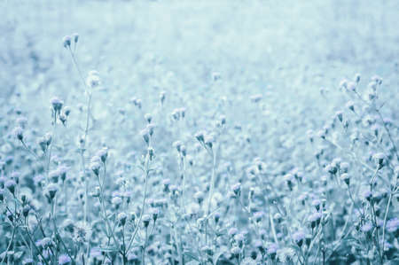 Meadow flowers, beautiful fresh morning in soft warm light. Vintage autumn landscape blurry natural background.