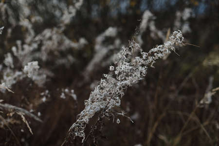 Stems of dried plants on a blurred background close-up