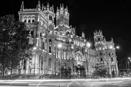 Night view of Madrid City Council with Cibeles Fountain, Spain