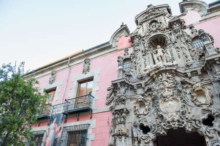Madrid, Spain - January 26, 2020: Low angle view of a traditional Spanish building on a street in Madrid, capital of Spain renowned for its rich repositories of European art.