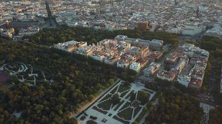 flight drones over the famous Park of the Retiro of Madrid and the Prado Museum