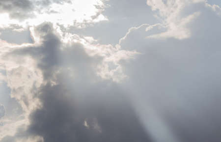 Storm clouds in a dramatic sky with breaking rays of the sun