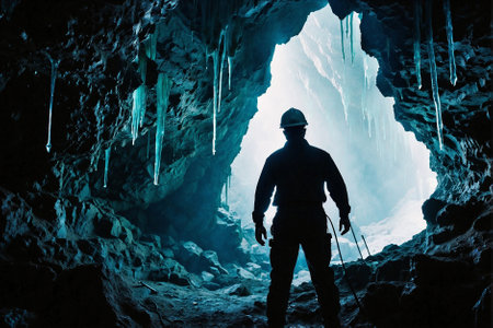 dark cave with man silhouette