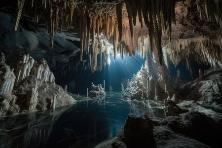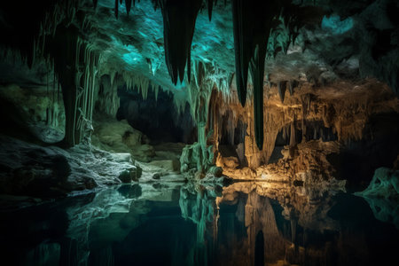 diverse range of underwater caves, with dazzling and unique formations, including towering stalactites and stalagmites, created with generative ai