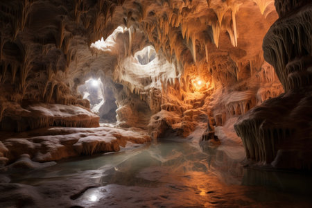 cave, with intricate formations and hidden chambers, revealing the mysteries of the underworld, created with generative ai