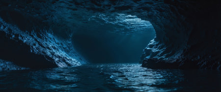 AI Generated. Dark Blue Textured Underwater Cave Landscape