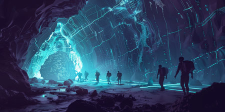 Adventurous Explorers Discover a Majestic Underground Cave with Generative AI.