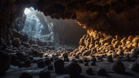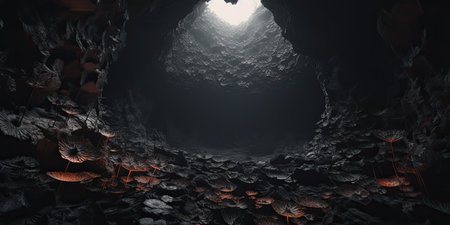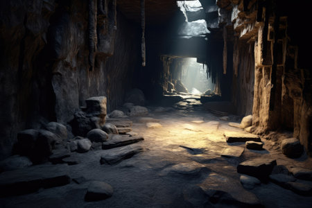 stock photo of a design inside dark cave photography Generated AI