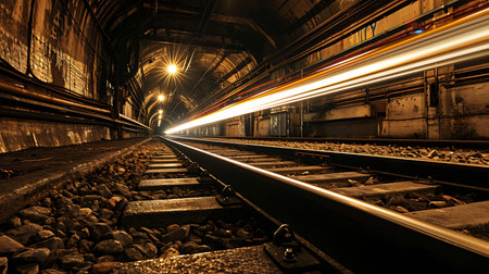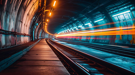 Dynamic subway tunnel streaks of light capture urban transit speed and modern motion