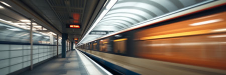 Dynamic motion blur subway train swiftly speeds through underground tunnel with rapid movement