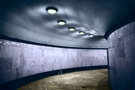 old poorly lit underpass made of brick Moscow Russia march 15, 2020.
