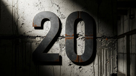 Weathered Steel Number 20 with Cracks and Rust on a Grungy Concrete Wall Background