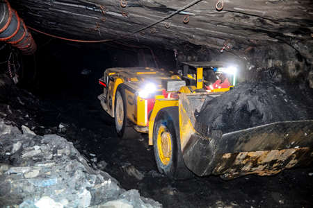Coal mine. Coal mining in the mine. oal exploration and machine.