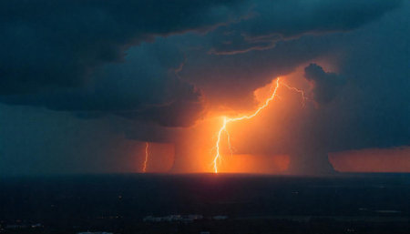 Powerful lightning strike illuminating a dramatic storm cloudscape