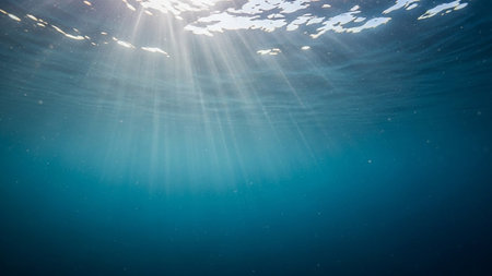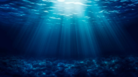Stunning Underwater Scene with Sunlight Rays Penetrating the Deep Blue Ocean Water Creating a Serene and Tranquil Atmosphere Beneath the Surface