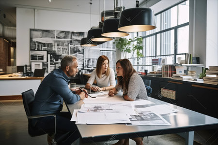 Collaborative Brainstorming: Colleagues Engaged in Document Discussion at Creative Office