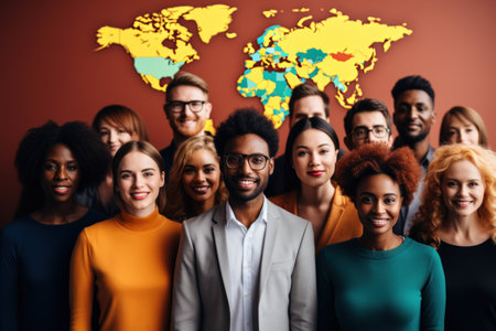 World map earth multicultural group of people integration diversity. Multinational group of people and global network concept visual