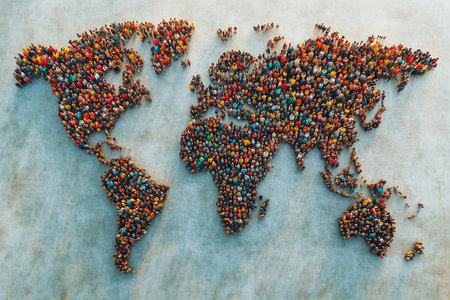 Global Business World Map Globalization World Map Concept. Crowd of people, Multicultural people forming a world map in a crowd, AI Generated