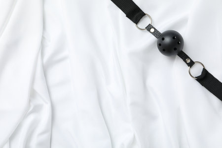 Set of erotic toys for BDSM. The game of sexual slavery with a whip, gag and leather blindfold. Intimate sex games