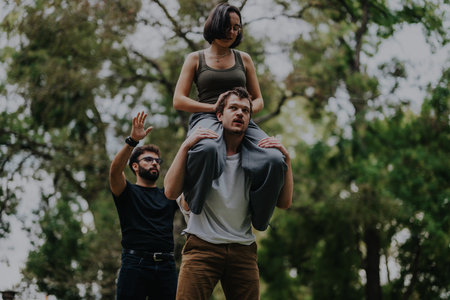 Bridge of Confidence, Shibari Dragonfly, A woman wrapped in a traditional Japanese shibari, tied with a rope, kinbaku. photo tying process, male hands