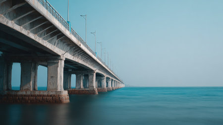 Sea landscape with a bridge extending to the horizon, creating a scenic and endless view over the water.
