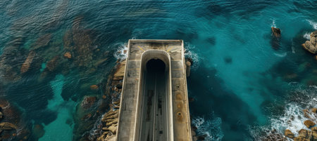 Aerial View of Coastal Highway Tunnel Entrance with Stunning Ocean Surroundings