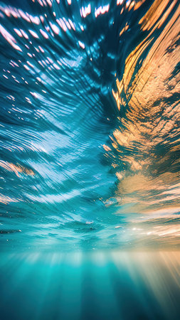 Sunlight rays illuminate underwater world creating a shimmering effect